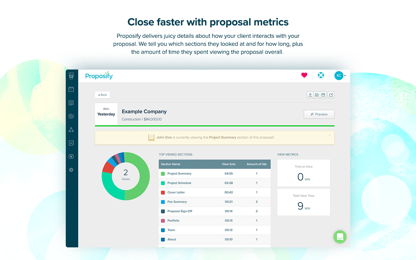 Use the Pipedrive-Proposify integration to streamline your sales process. Connect your Proposify proposals with deals in Pipedrive, and we'll automatically update your deals as they progress through the sales cycle. Proposify notifies you when prospects view proposals, so you can follow up just at the right time.